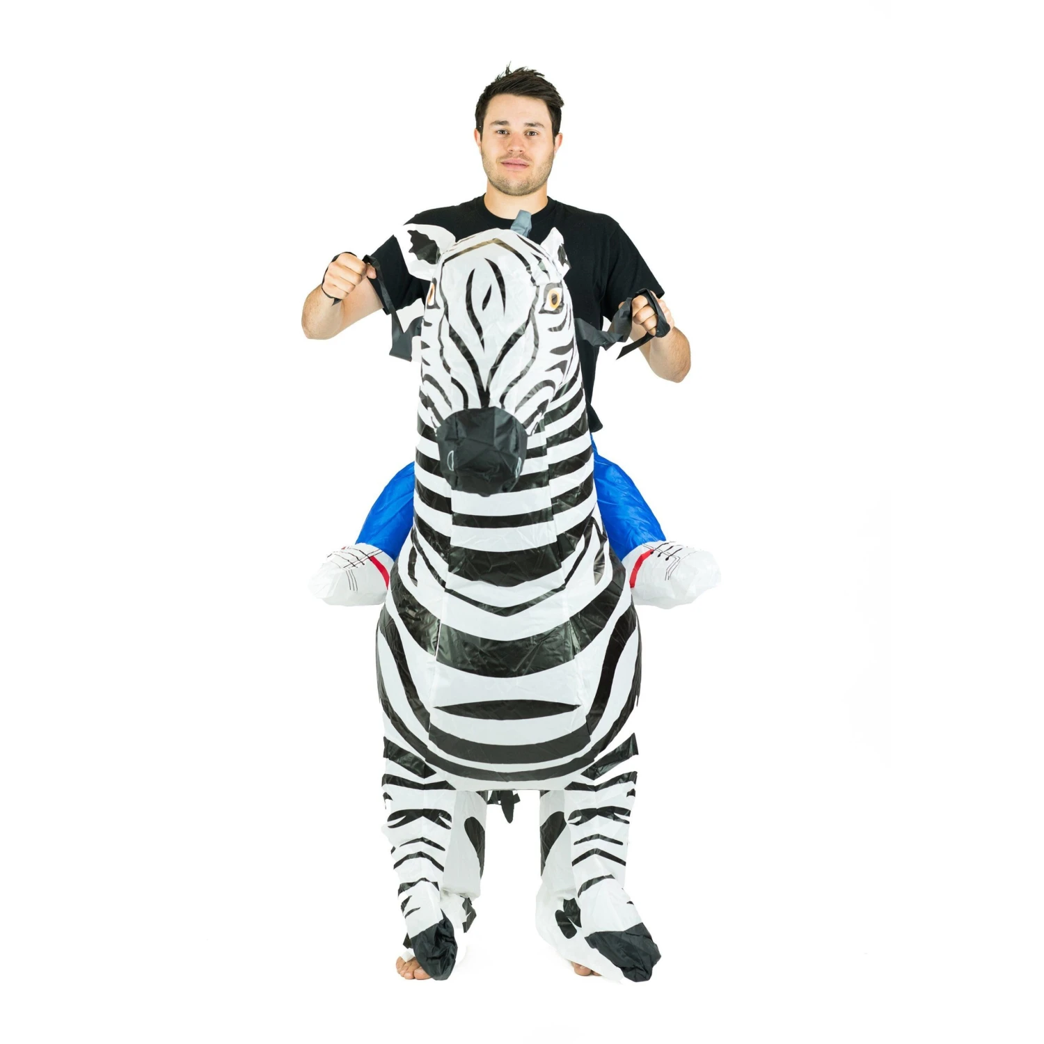 Keep it black and white with our adult inflatable zebra costume! This funny ride on zebraย fancy dress will steal the show at any event! Suit up with ourย blow upย outfit!